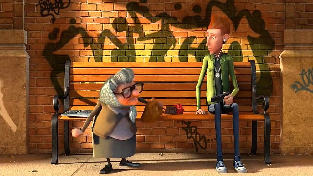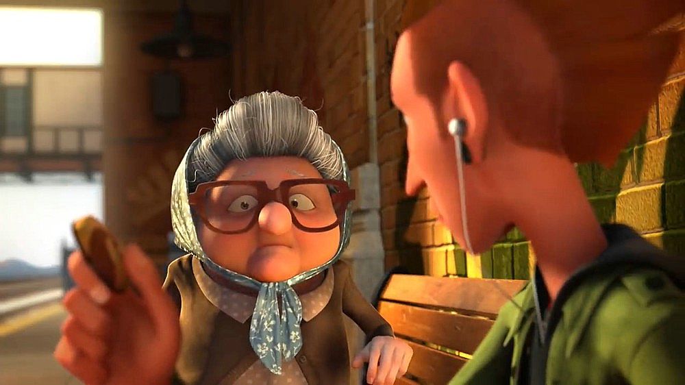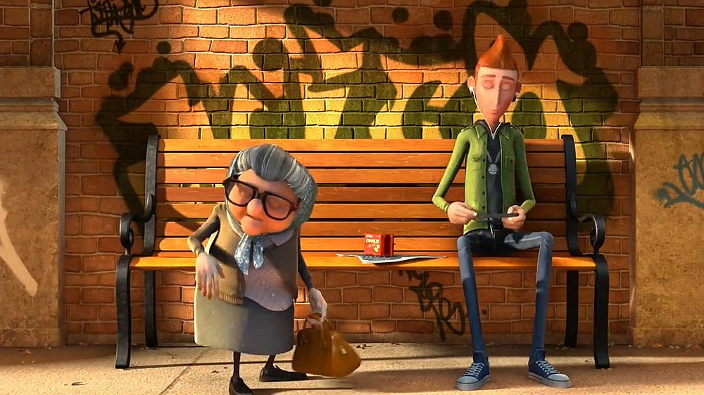 這部三維動畫片在短短4分鐘內(nèi)講了一個不太新鮮的故事,但是卻有自己對一些問題的獨特思考,傲慢和偏見經(jīng)常伴隨我們普通人左右,是固定僵化的思維方式,是高人一等的洋洋自得,從視頻中老太太指責(zé)年輕人那幾個手勢(電子游戲,沒有禮貌之類的)的畫面可以很明白的看出那些關(guān)鍵詞,其實都是我們對超出自己認(rèn)知以及和自己不同的事物所產(chǎn)生的恐懼,這恐懼可能會以傲慢不屑一顧的方式表達(dá)出來,比如你剛從父輩眼中堅強(qiáng)的垮過來,下代人立馬成了你口中即將垮掉的那一批……