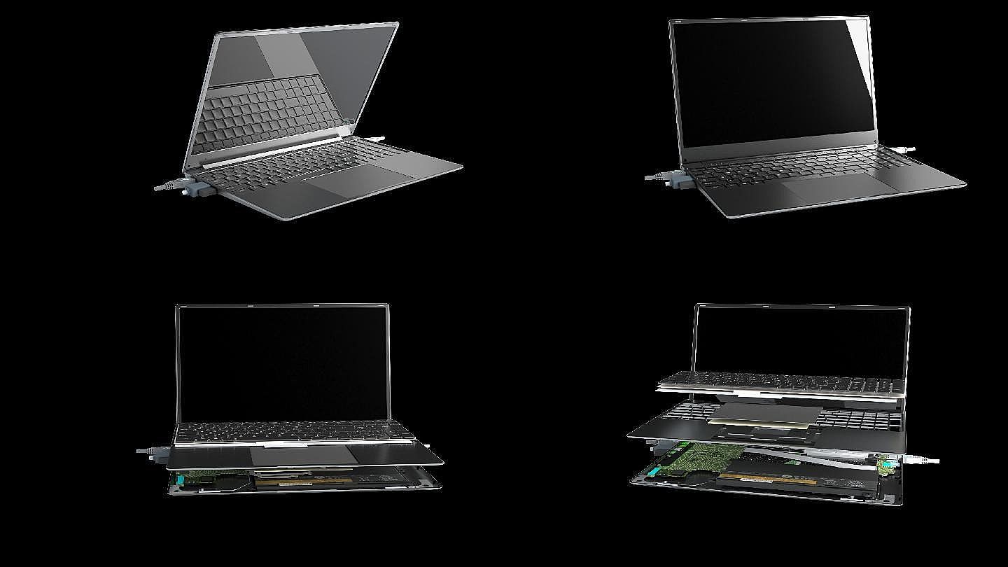 素材標(biāo)題:筆記本電腦零件結(jié)構(gòu)分解展示三維動畫鏡頭片段
